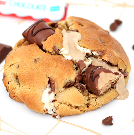 Experience cookie bliss with Belgian milk chocolate, gooey Kinder pieces, and a soft, gooey centres